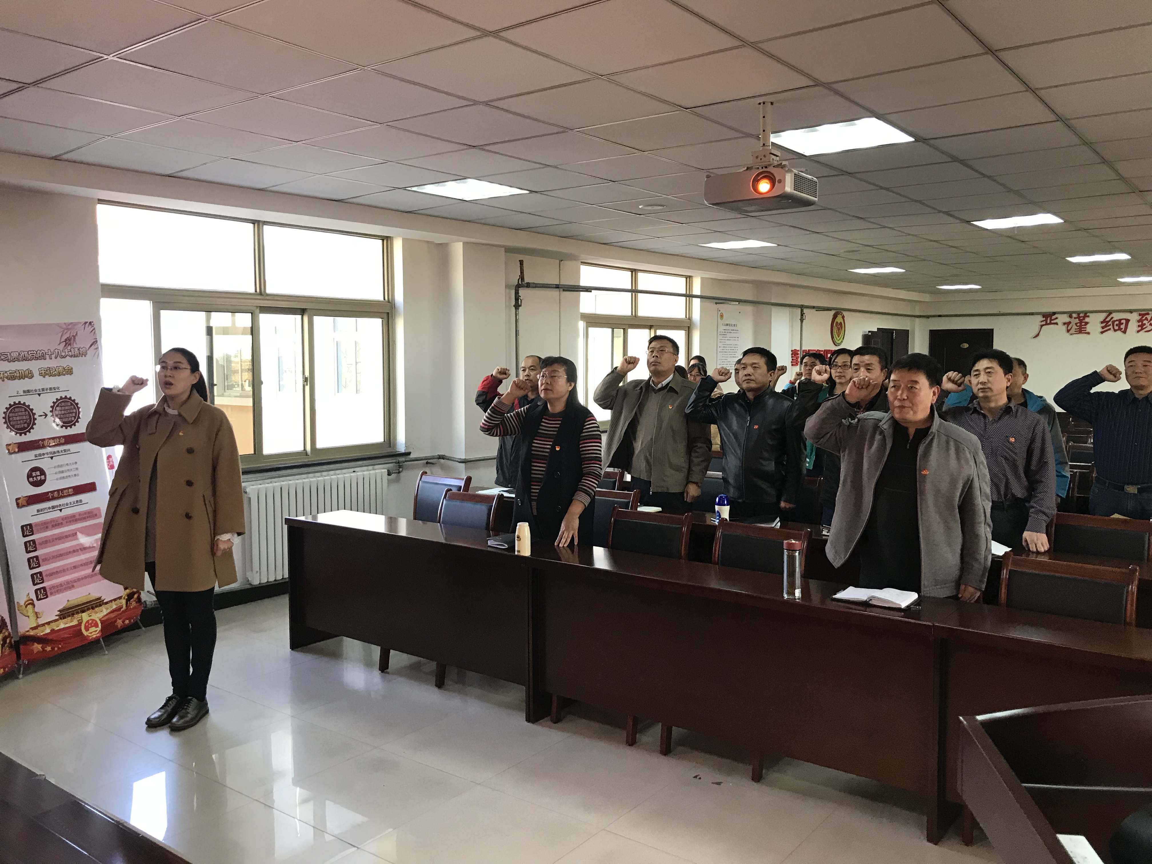 学习活动中,首先举行隆重的“不忘初心 重温入党誓词”仪式,让机关党员接受党性洗礼,始终铭记入党誓言,加强自我鞭策和激励。
