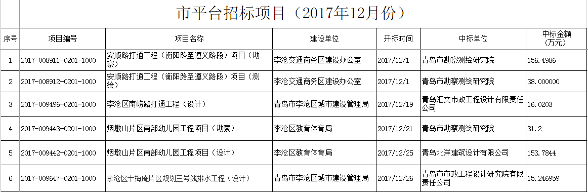 市平台招标项目(2017年12月份)