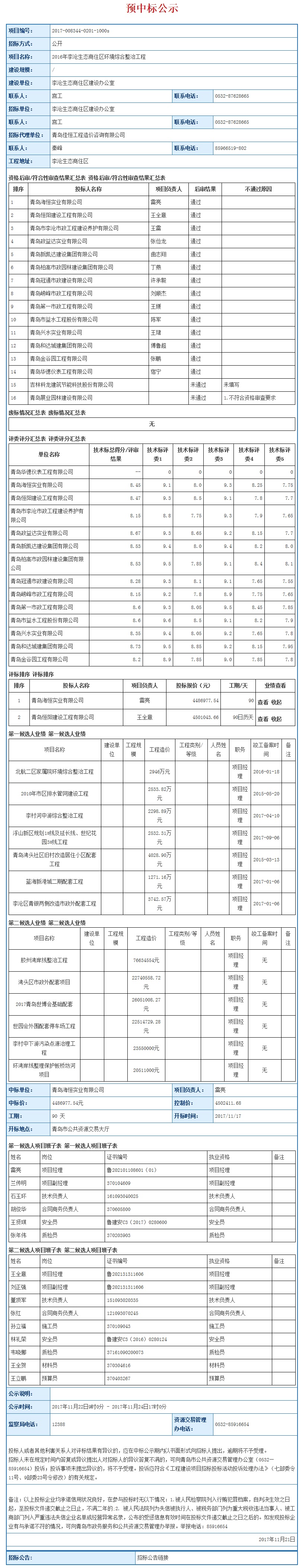 2016年李沧生态商住区环境综合整治工程中标公示